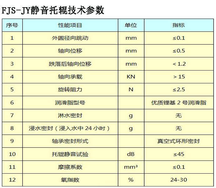 产品简介: FJS-JY低噪音托辊,其管体选用优质改性超高分子量聚乙烯(UHMW-PE)主材料,通过良好的生产加工工艺,使动平衡等级达到G16(ISO1940)标准,运行平稳,U型通风槽精细加工,减少与皮带的摩擦。结合华北塑料公司自主研发的唇边式消音密封,使带式输送机的噪音降到(达到)国家标准GB12348以下。