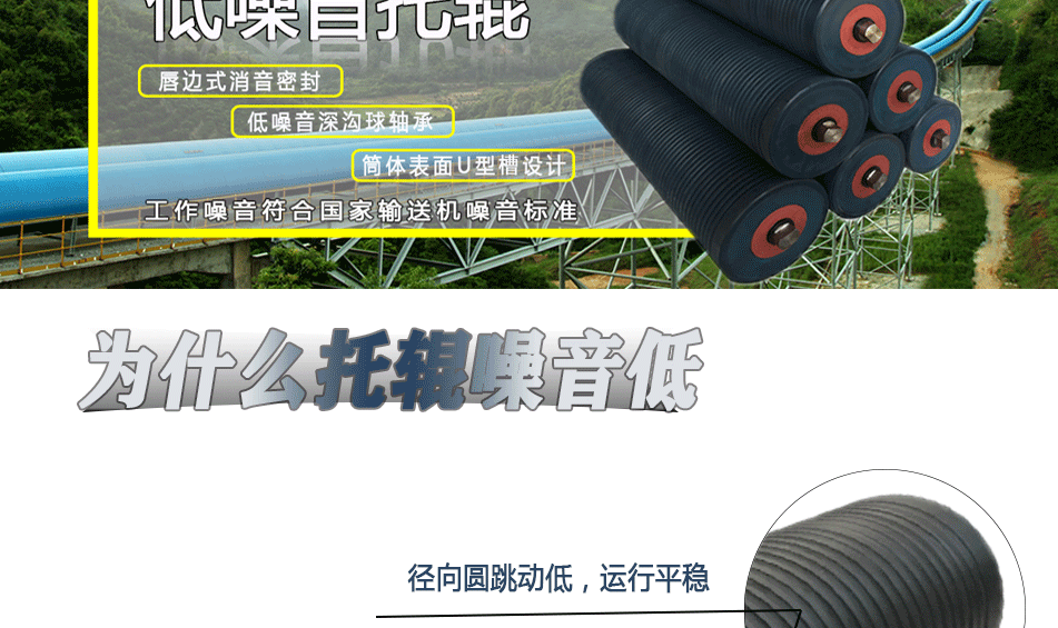 使用FJS-JY低噪音托辊可减少能源消耗、延长皮带寿命,降低运行成本,可靠性强、减少非计划停机。